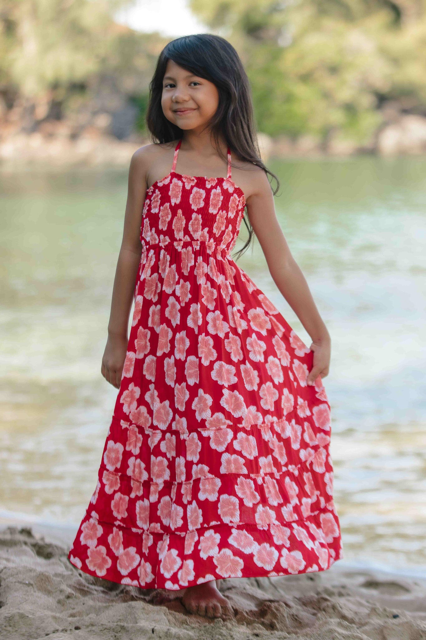 Keep your little ones event-ready with a touch of fun in the Tiare Hawaii Kids Bellini Dress. Finding a new way to Match with Mom, one bold dress at a time, the floor-length flowing design will be a new family favorite. Featuring a self tie halter with a caged back design, the Kids Bellini Dress is a sunny day staple that will always make them smile.