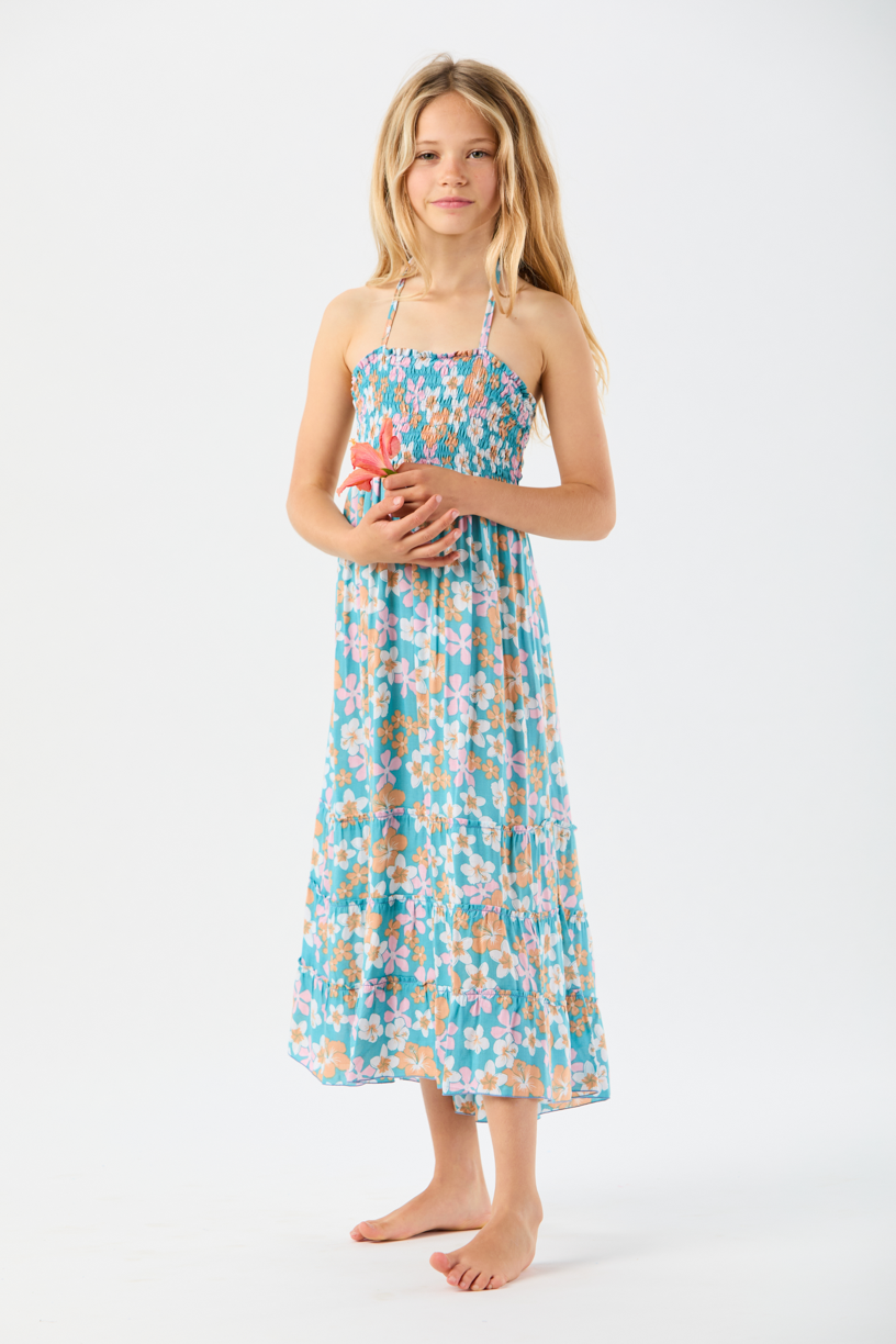 Keep your little ones event-ready with a touch of fun in the Tiare Hawaii Kids Bellini Dress. Finding a new way to Match with Mom, one bold dress at a time, the floor-length flowing design will be a new family favorite. Featuring a self tie halter with a caged back design, the Kids Bellini Dress is a sunny day staple that will always make them smile.