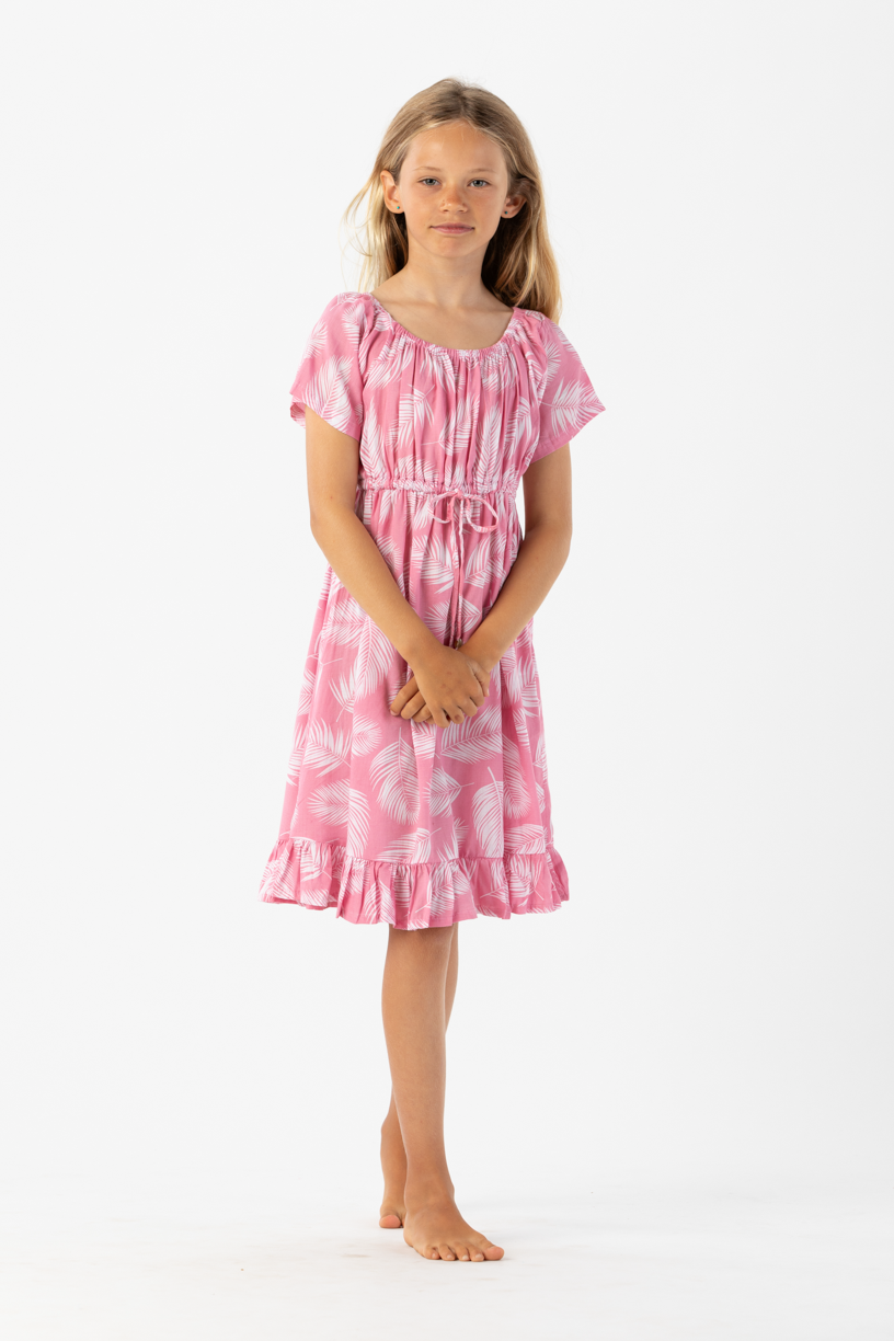 Introducing our adorable Kids Manapua Dress with a charming scoop neck detail and ruffle trim skirt, adding the perfect blend of playfulness and elegance for your little one's wardrobe! Crafted with care from soft and breathable rayon fabric, this dress ensures comfort and freedom of movement all day long. The highlight of this dress is its delightful ruffle trim, adding a touch of whimsy and flair to any outfit.
