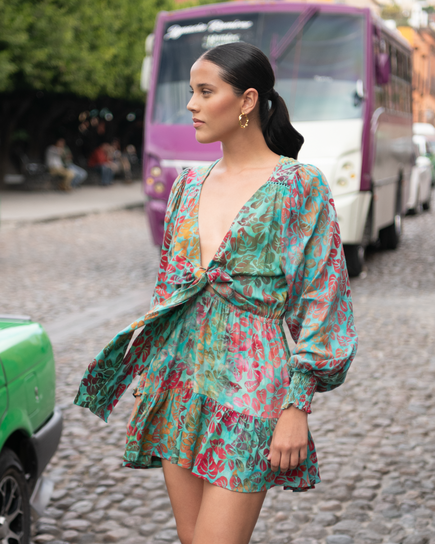 Discover effortless elegance with our Tavarua Mini Dress featuring a tiered hemline, low V neckline, and long balloon sleeves. This enchanting piece combines classic charm with contemporary style, making it a standout choice for any event.The tiered hemline adds a playful, flirty touch, cascading gracefully for a flattering silhouette that moves with you. The low V neckline provides a hint of allure while enhancing your natural curves. Long balloon sleeves bring a touch of drama and sophistication, offering a perfect balance of style and comfort.